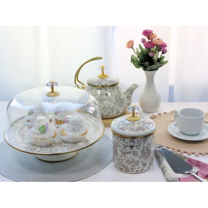 Опис Тортівниця емальована Elmani BIRD з кришкою на ніжці, 30 см. (763-043)