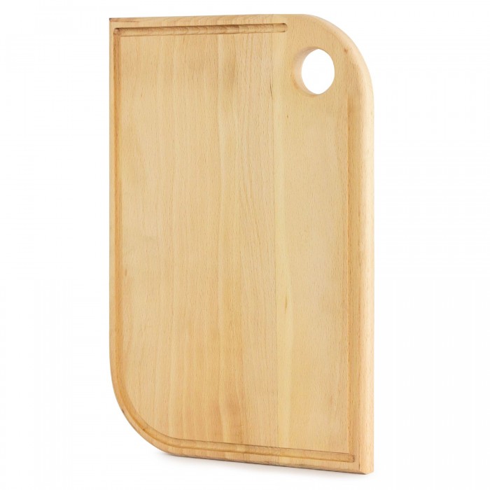 Дошка має оптимальний розмір - 38 см, що дозволяє зручно працювати з будь-якими продуктами. Вона оснащена практичною ручкою, яка забезпечує зручний захват і забезпечує безпеку під час використання. Крім того, на дошці є спеціальний жолобок для стоку соку, що додатково полегшує процес нарізки фруктів та овочів.