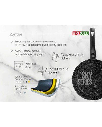 Основные характеристики Сковорода с антипригарным покрытием Brizoll SKY 28 см (52-2860)