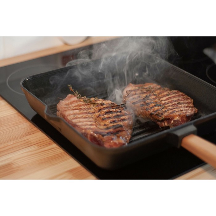 Изготовленная из высококачественного чугуна, сковорода обладает превосходной теплопроводностью, благодаря которой продукты получают равномерное прожаривание со всех сторон. Кроме того, чугун сохраняет тепло на долгое время, что позволяет дольше сохранять тепло блюд после приготовления.