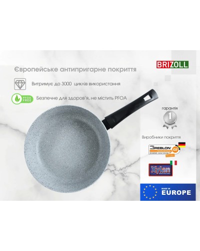 Сковорода MOSAIC від Brizoll (53-2655) має міцний корпус з алюмінію, який швидко і рівномірно нагрівається, що дозволяє зберегти всі вітаміни та поживні речовини в продуктах.