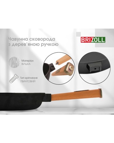 Зручна ручка на сковороді забезпечує надійний захват та зручність при переносці. Сковорода підходить для використання на всіх типах плит, включаючи індукційні. Завдяки своїй міцності та довговічності, залізна сковорода Brizoll Optima стане відмінним придбанням для будь-якої кухні і буде служити вірою і правдою багато років.